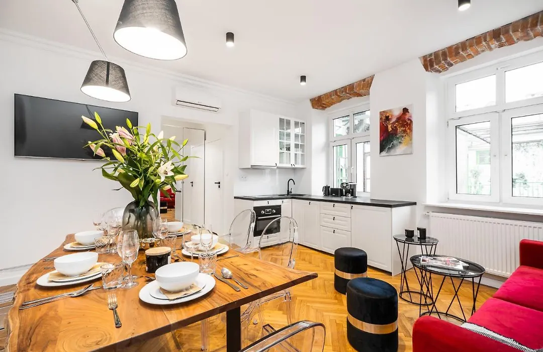 Kávé/tea készítőt, hűtőt és sütőt szintén kínálnak. Az apartman hozzáférést kínál a Krakko-Balice nemzetkozi repuloter repülőtérhez, amely gépjárművel 25 perc alatt elérhető.